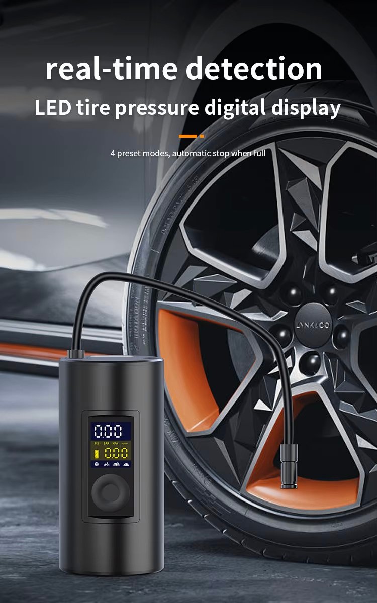 AR-S8-1 is a compact and portable electric air pumps for Car, Motorcycle, Bikes, Balls with LED lights, Its lightweight design makes it easy to carry, perfect for camping trips, beach outings, or home use. It comes with multiple nozzle attachments to fit various valve sizes.